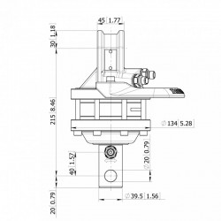 Ha una rotazione illimitata, una capacità di 10 kN e un flusso d’olio di 10 L/min.