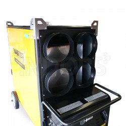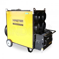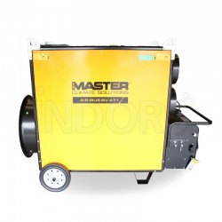 I riscaldatori Air Bus professionali Master BV 471 E, BV 471 S e BV 471 SR sono costituiti da un solido telaio in acciaio e da una camera di combustione in acciaio inox. I generatori aria calda portatili BV 471 S e BV 471 SR poggiano su robuste ruote e includono 4 solidi ganci per il sollevamento: questi generatori Air Bus sono facilmente trasportabili. Il bruciatore Riello è separato.