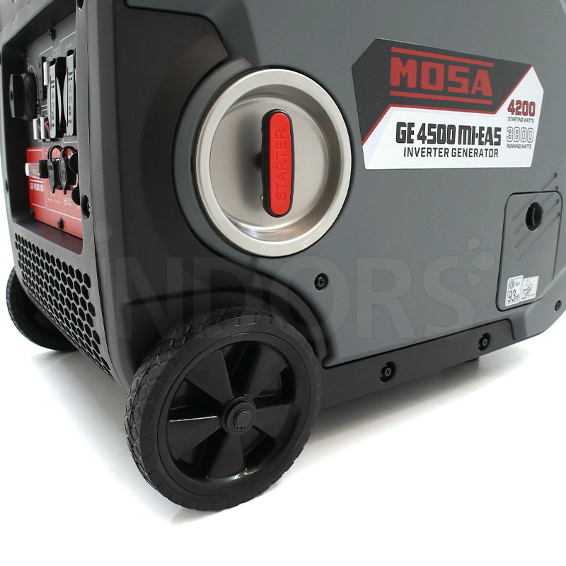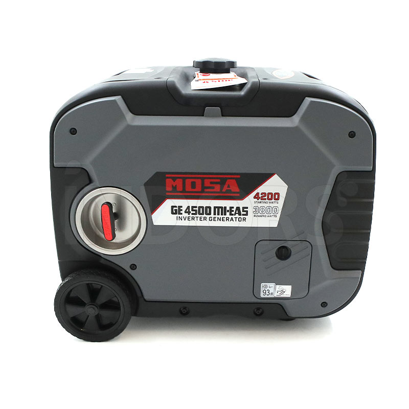 MOSA GE 4500 MI è un generatore a benzina 4,2 kW con regolatore automatico della tensione. Questo generatore inverter Mosa GE 4500 MI dispone di arresto motore per basso livello d'olio, con funzione ESC (Engine Speed Control).
