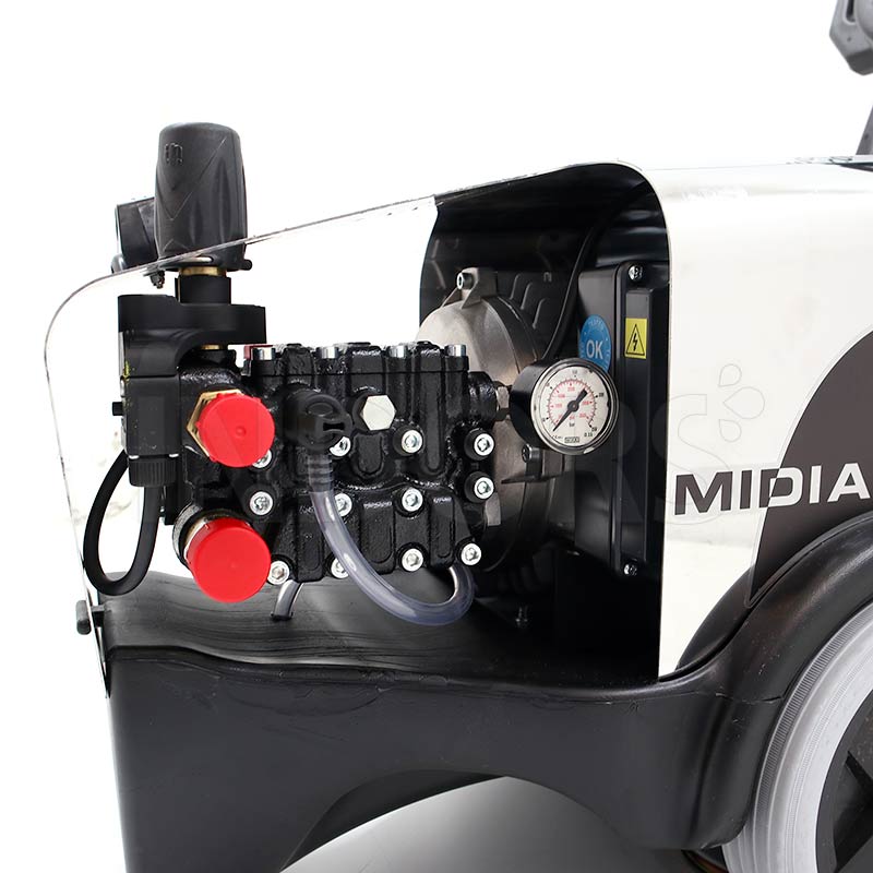 Biemmedue Midia TSD è un’idropulitrice in grado di esercitare una pressione di 160÷200 bar, per una portata di 780÷900 L/h. Questa idropulitrice monta una pompa con testata in ottone e bielle a pistoni IP E1 della nota azienda Interpump, la cui rotazione è di 1450 RPM. Il sistema di arresto della macchina è di tipo TSD, ovvero un arresto ritardato. Midia TSD monta un motore con protezione termica ad alto rendimento, ciò rende il prodotto potente pur essendo di dimensioni compatte.