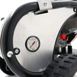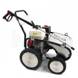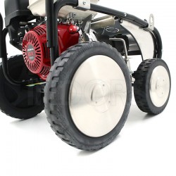 La struttura della macchina è realizzata interamente in metallo, monta 4 grandi ruote che permettono all'utente di trasportare agilmente l'idropulitrice anche su pavimentazioni irregolari.