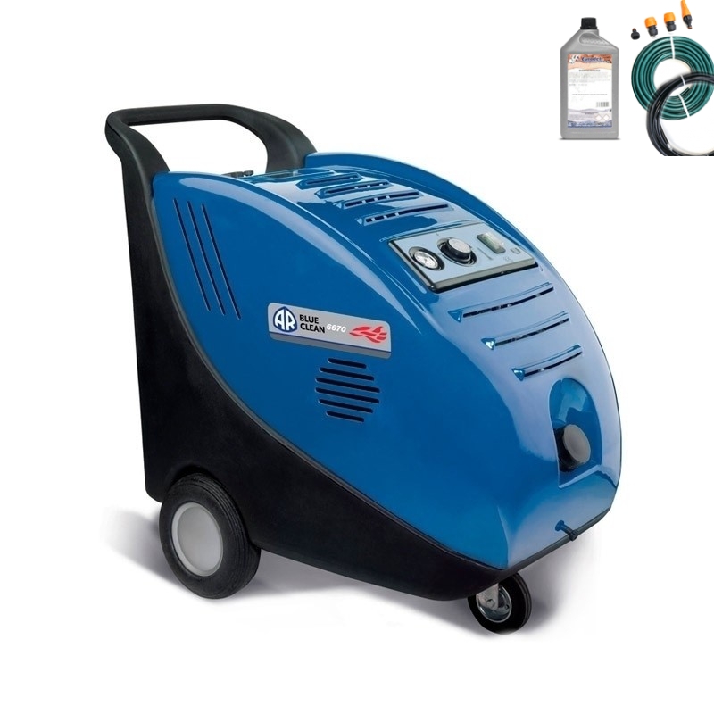 Annovi Reverberi AR 6670, idropulitrice a caldo dotata di motore elettrico trifase a induzione con funzionamento a 1450 giri al minuto; la bassa velocità di rotazione del motore garantisce una grande durabilità nel tempo anche nel caso di uso intensivo. L'idropulitrice è un prodotto di qualità professionale, equipaggiata con un'affidabile pompa a 3 pistoni in ceramica con sistema biella-manovella, una valvola di by-pass con azzeramento della pressione nella testa della pompa ed una protezione termica integrata.