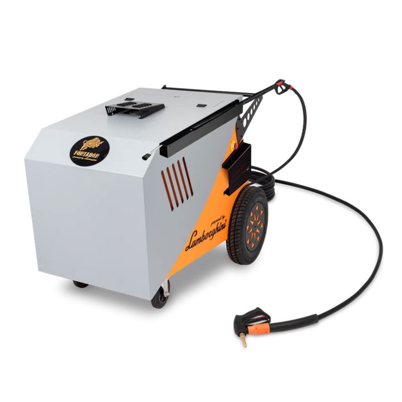 Grazie alla collaborazione con la divisione di bruciatori Lamborghini Caroclima, che permette di registrare il marchio "Fortador Powered by Lamborghini", nascono prodotti di notevole qualità e design accattivante come questo pulitore a vapore Fortador Pro Max.