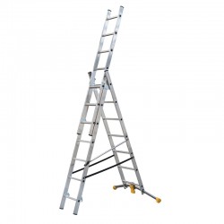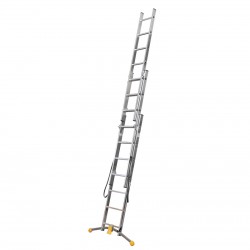La struttura della scala è realizzata in alluminio, garantendo leggerezza e facilità di trasporto, i montanti zigrinati in alluminio offrono un’eccellente presa durante la salita e la discesa.