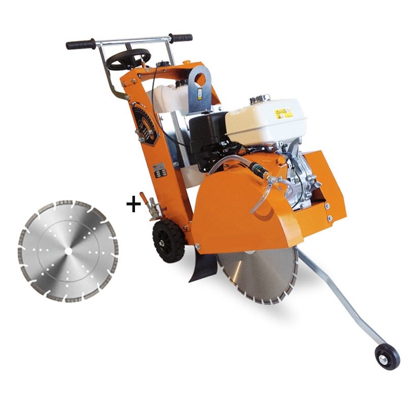 La macchina utilizza dischi da 400 mm con albero da 25,4 mm, garantendo precisione su superfici in asfalto e calcestruzzo e mantenendo elevata efficienza anche nelle lavorazioni continuative.