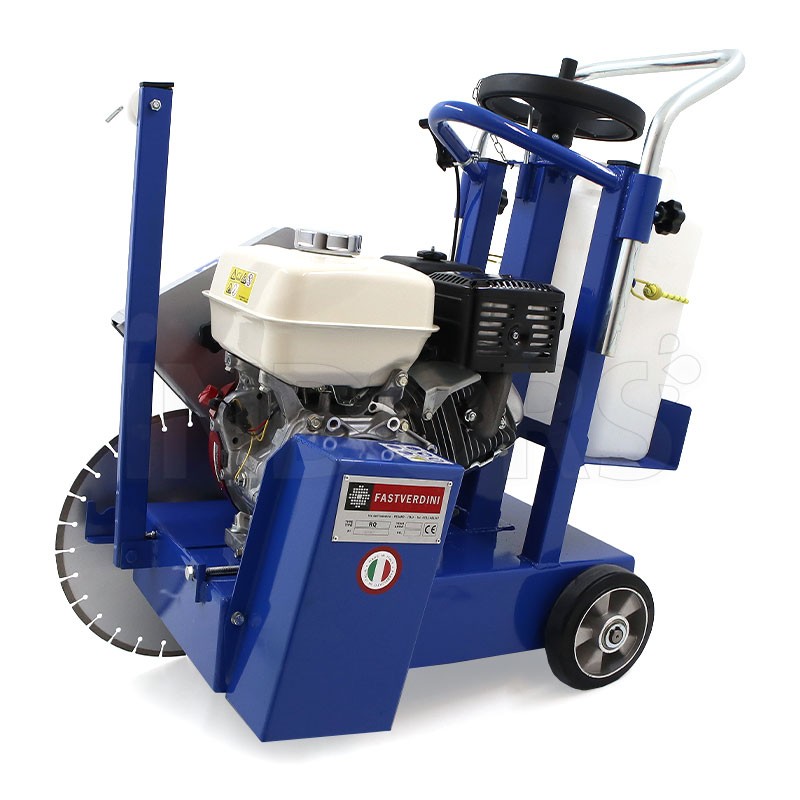 Fast Verdini RQ con motore Honda GX270 è una sega per Asfalto e Calcestruzzo alimentata a benzina che unisce in una sola macchina compattezza e potenza. Dotato di avanzamento manuale a spinta e serbatoio dell’acqua in vetroresina da 20 L questa Sega Taglia Asfalto ha motore da 9 HP con avviamento auto-avvolgente e dispone di 4 cinghie di trazione motore-albero porta disco.