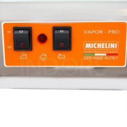 La caldaia di Michelini Vapor Pro è dotata di un interruttore luminoso che indica lo stato di accensione e una spia che segnala quando il vapore è pronto all'uso.