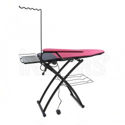 Un pratico porta caldaia universale e una presa di servizio integrata completano le dotazioni standard, rendendo l'asse da stiro un alleato indispensabile per chi desidera ottenere risultati professionali anche a casa.