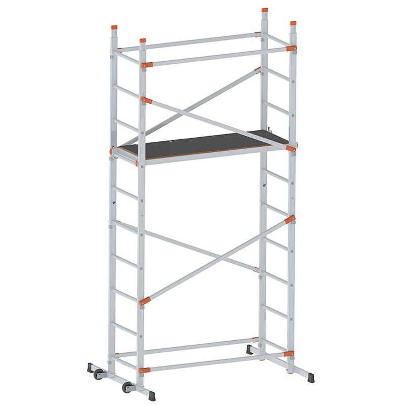Il pianale in Eurodeck professionale è supportato da un telaio con estremità sagomate che permettono un incastro perfetto sal montante, migliorando la distribuzione del carico e la sicurezza durante l’uso fino a 1,9 m di altezza al piano. Dispone di botola di accesso 61 x 46 cm.